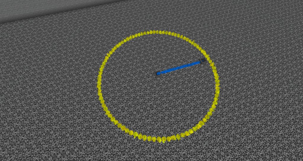 Sammelradius: wird durch aufsteigende lila Partikel markiert.